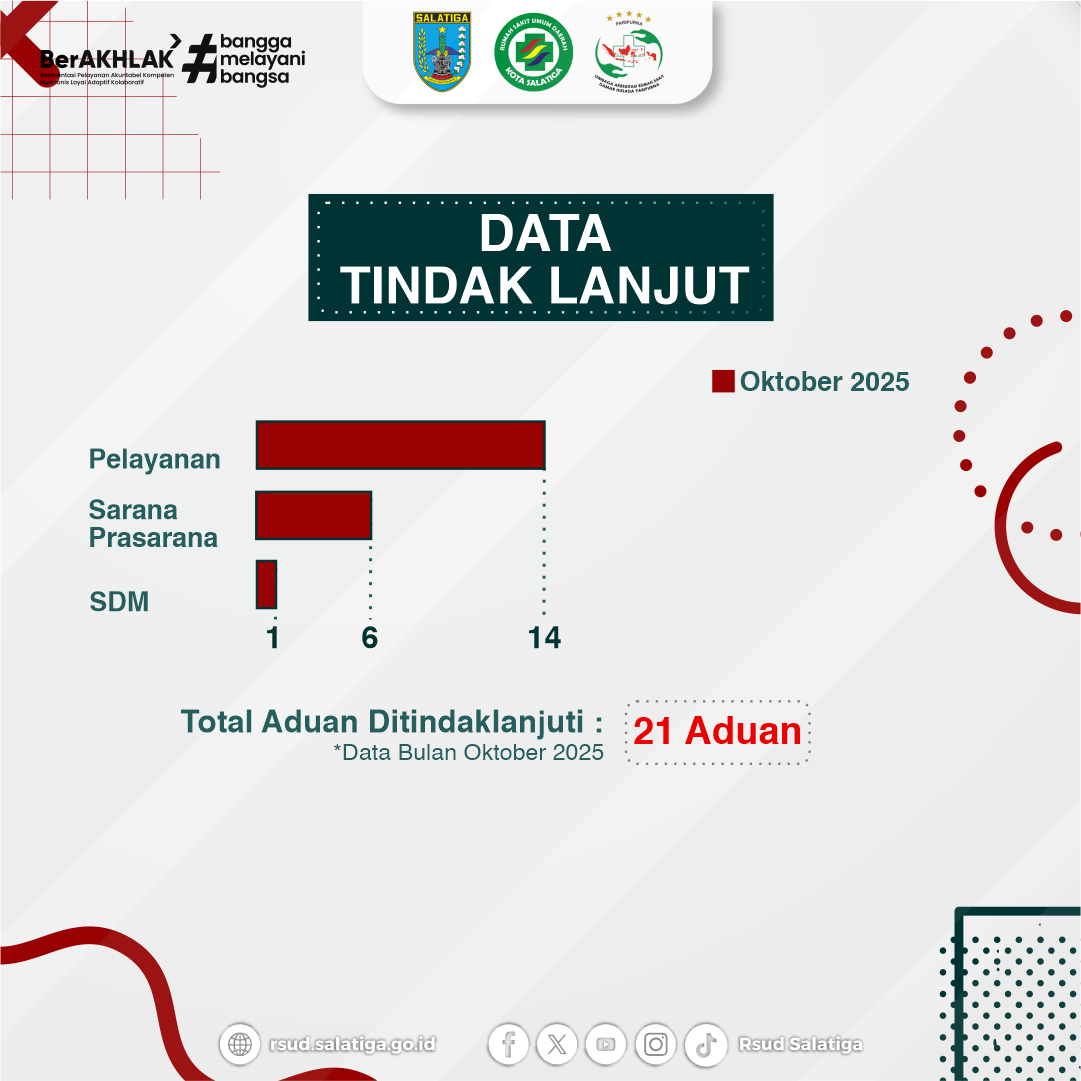 Sobat RSUD, berikut kami sampaikan rekapitulasi aduan masyarakat terkait RSUD Kota Salatiga pada Bulan Oktober 2025